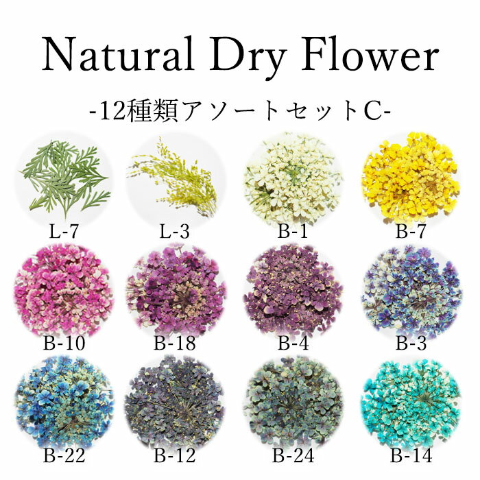 その他のアソートセットも販売中!商品説明 12種類のドライフラワーが入ったアソートセットです。